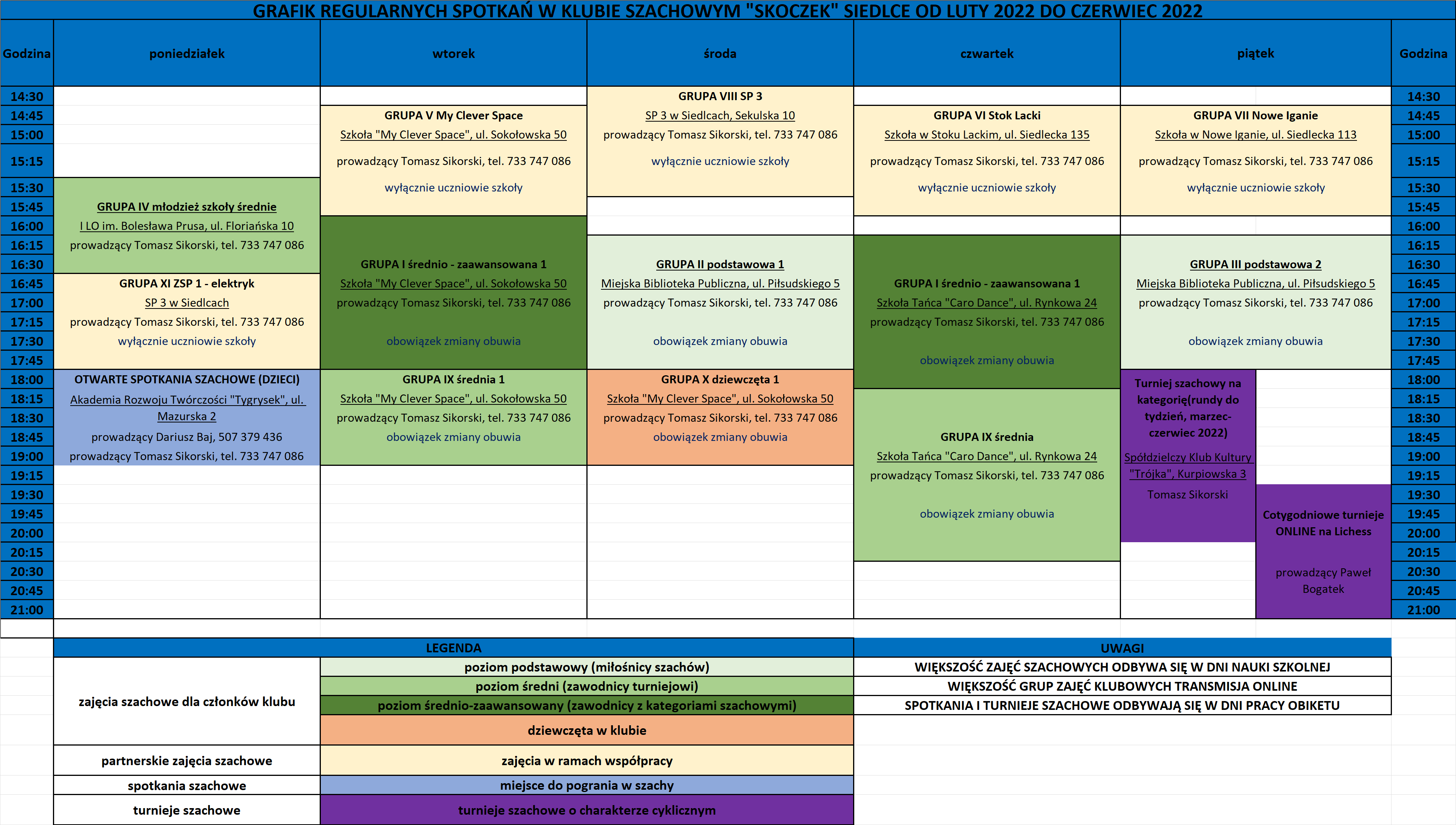 GRUPY MISTRZOWSKIE – osoby z wybitnymi osiągnięciami szachowymi, najczęściej zajęcia indywidualne (nie ma w grafiku)